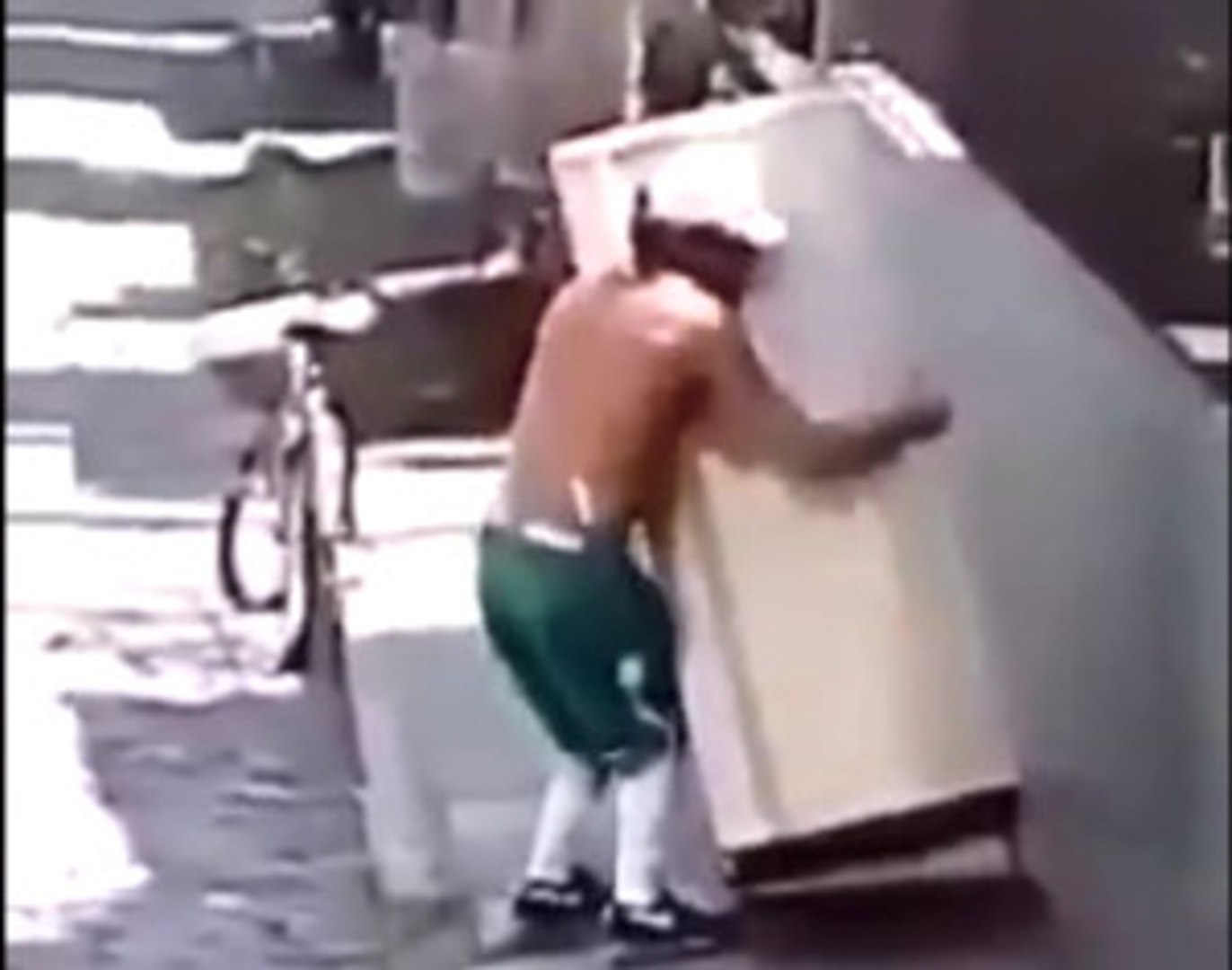 Buzdolabını önce duvara dayayıp omzuna alan adam ardından bisikletine bindi ve yoluna devam etti.